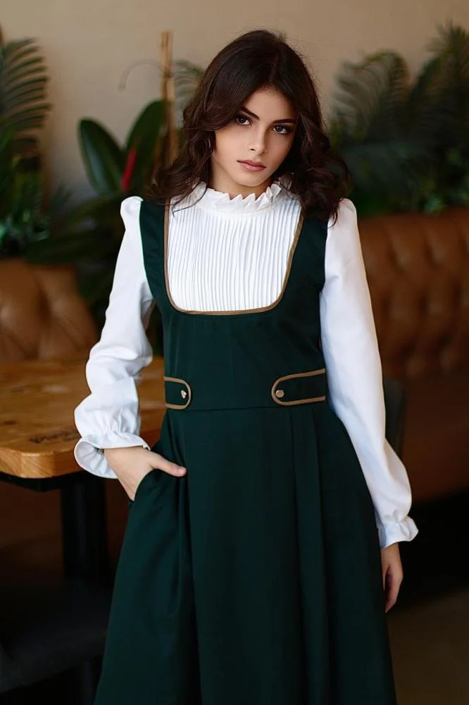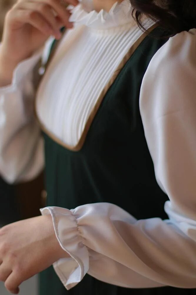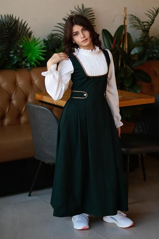 مريول بكسرات اماميه عمليه مثبته بخياطة منتهي بزم نهاية الاكمام.