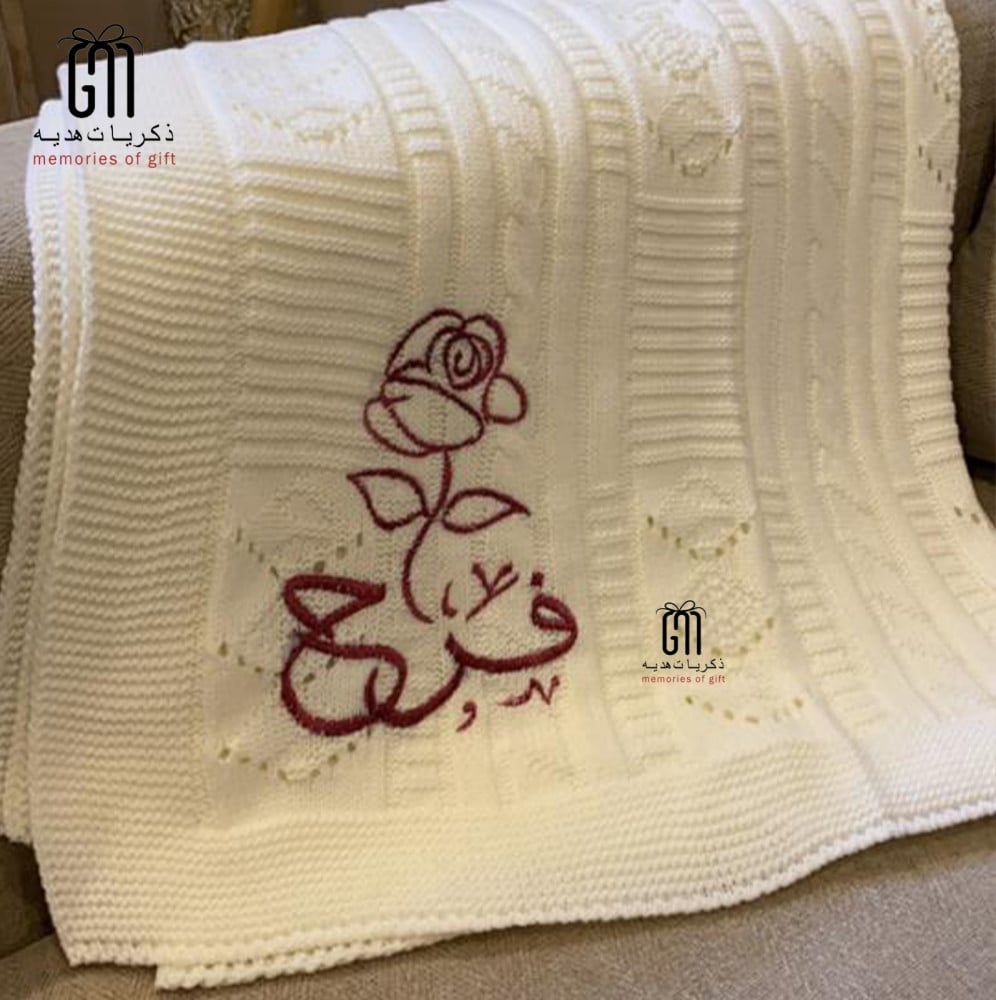 بطانية خفيفه ( الخامة: تريكو ناعم )المقاس 95*90مخصصة للمواليد ث؛ يتم تطريز اسم الطفلوتقديمها بشكل جميل في علبة هدايا .